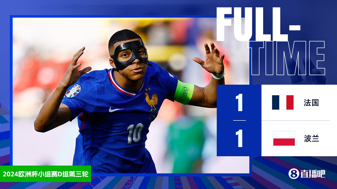 欧洲杯小组赛D组第3轮,法国1-1波兰第二出线,姆巴佩欧洲杯处子球,莱万点射。
