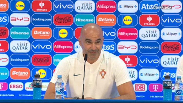 6月26日讯 葡萄牙将在欧洲杯小组赛第三轮迎战格鲁吉亚,赛前,葡萄牙主帅罗伯托-马丁内斯出席新闻发布会。