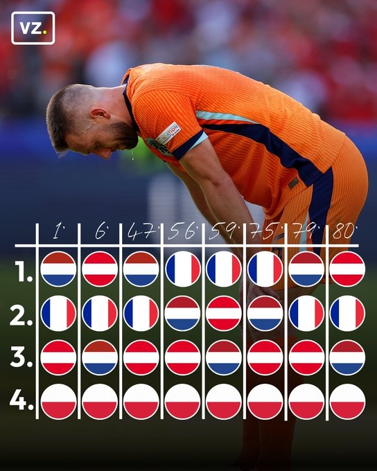 最终奥地利头名出线,法国第二出线,荷兰第三出线。