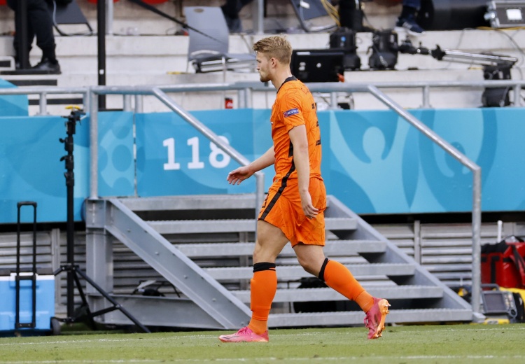 德里赫特至今参加三届大赛。2020(实际2021年举办)欧洲杯,21岁的德里赫特作为绝对主力,随队打进16强,1/8决赛染红,荷兰0-2输给捷克后出局。