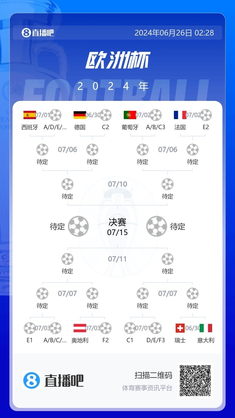 6月26日讯 欧洲杯小组赛D组第3轮,法国1-1波兰,小组第二出线,落位上半区,与西班牙、德国、葡萄牙同半区。