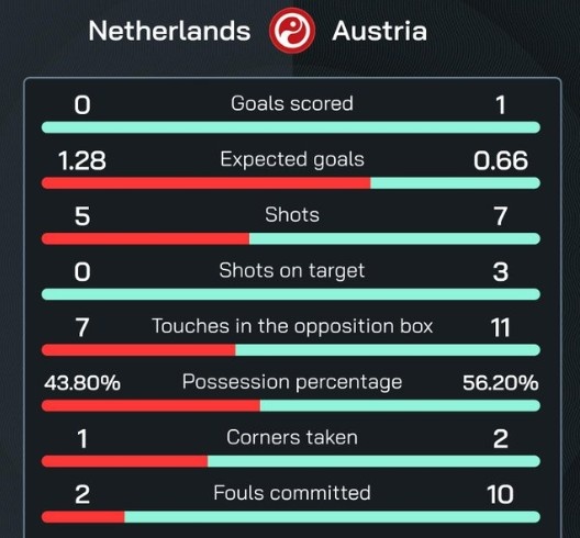 6月26日讯 欧洲杯小组赛末轮焦点战,荷兰上半场0-1落后于奥地利。