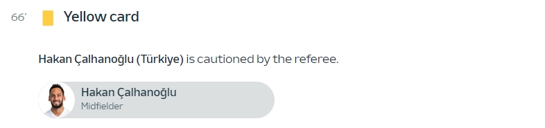 本场比赛恰尔汗奥卢因争吵染黄,累积黄牌停赛。此外,土耳其本场首发中卫阿卡丁也染黄停赛。