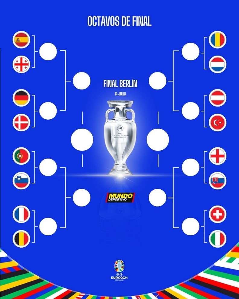 6月27日讯 欧洲杯小组赛全部战罢,16强对阵出炉。