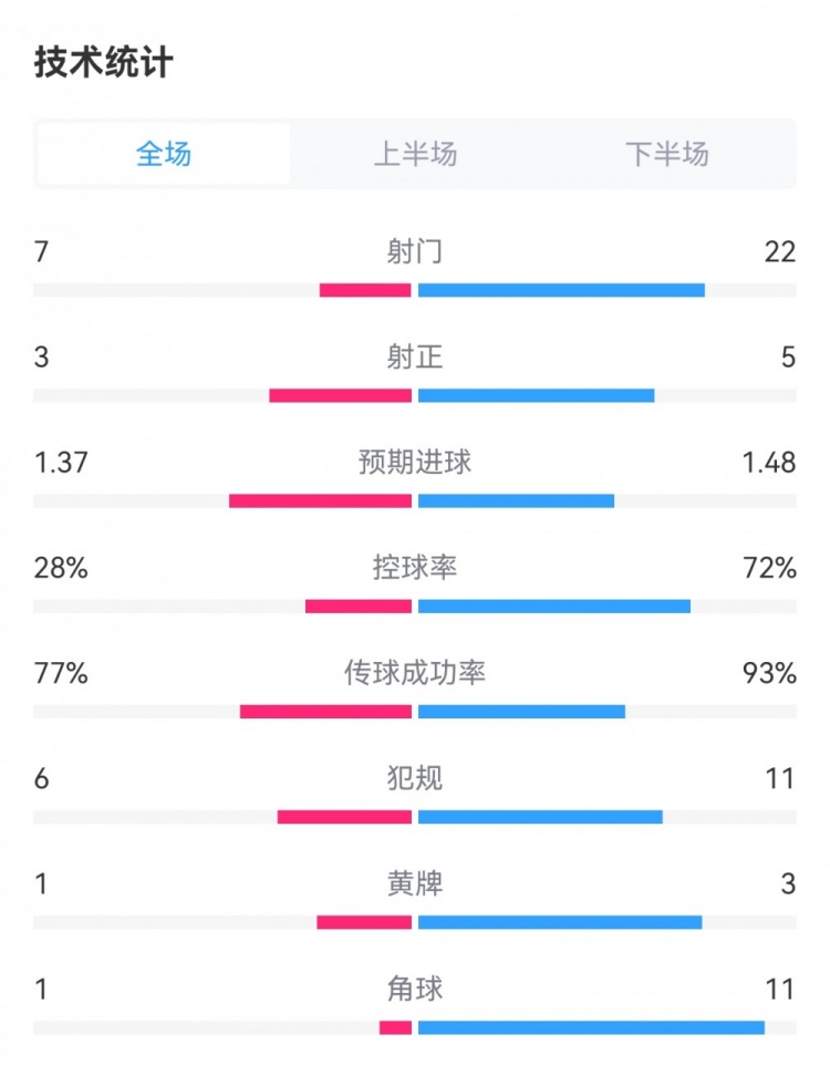 格鲁吉亚2-0葡萄牙数据:射门7-22,射正3-5,角球1-11