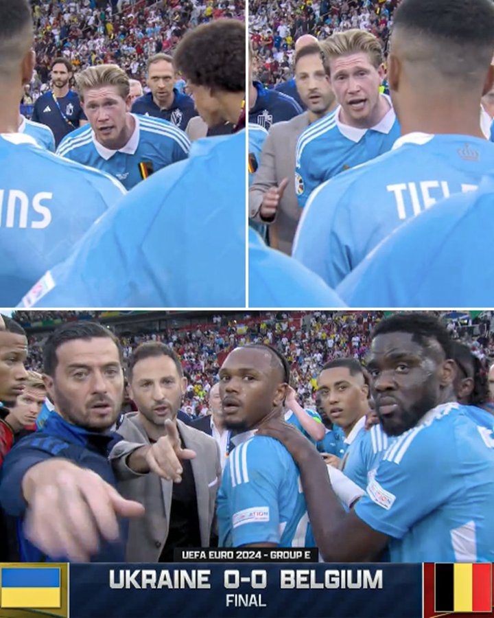 06月27日讯 欧洲杯小组赛E组,乌克兰0-0比利时,比利时第二出线将战法国。ESPN报道,赛后比利时球员聚在一起激烈的讨论,而主教练特德斯科手指要求摄像机不要拍摄