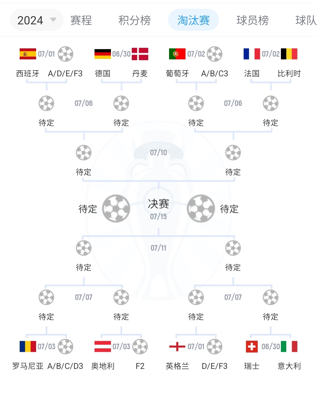 ACDE的小组第三出线,西班牙vs斯洛伐克 英格兰vs荷兰 罗马尼亚vs斯洛文尼亚 葡萄牙vs匈牙利