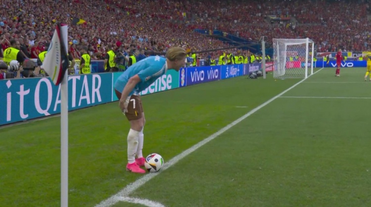 6月27日讯 比利时0-0战平乌克兰,比赛最后时刻比利时的角球,德布劳内叫队友来护球,狂喊十几秒没人应!急得直跺脚!
