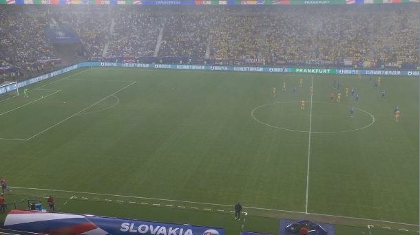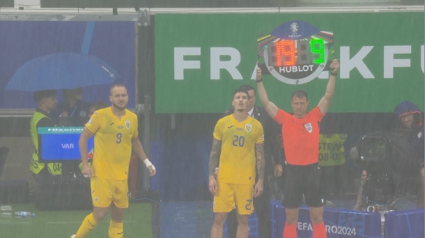 倾盆大雨!斯洛伐克vs罗马尼亚现场的雨已经下到画面模糊