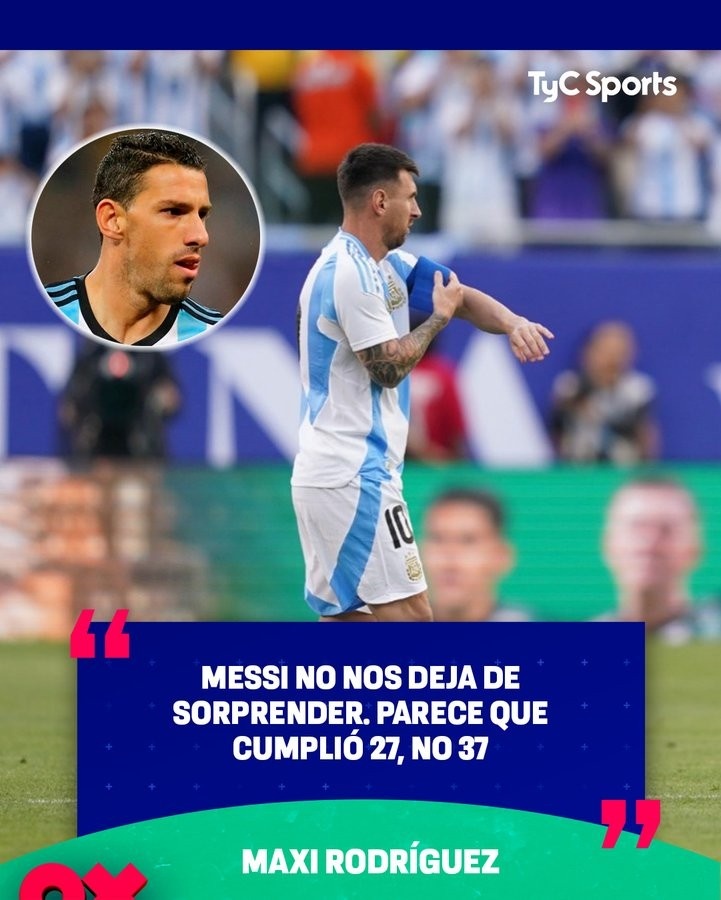 6月27日讯 阿根廷1-0绝杀智利,在美洲杯提前小组出线,梅西连场表现出色。马克西-罗德里格斯在接受采访时表示:“梅西总是能让我们感到惊讶。他好像才27岁,而非