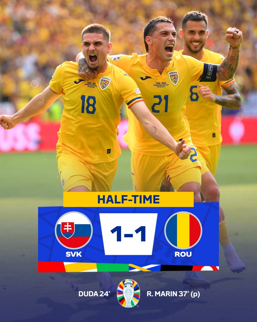 拉兹万马林主罚点球扳平比分,罗马尼亚1-1斯洛伐克。↓