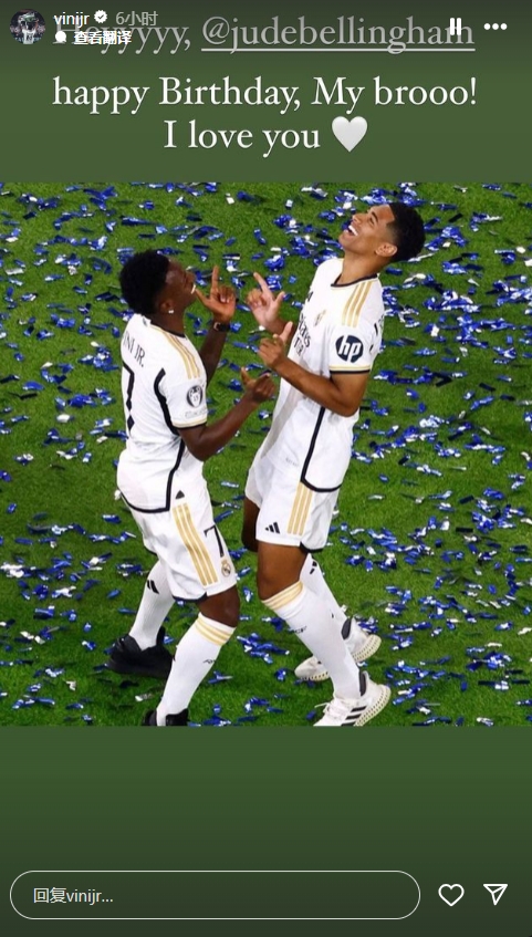 昨天是贝林厄姆生日,维尼修斯更新社媒为他庆生
