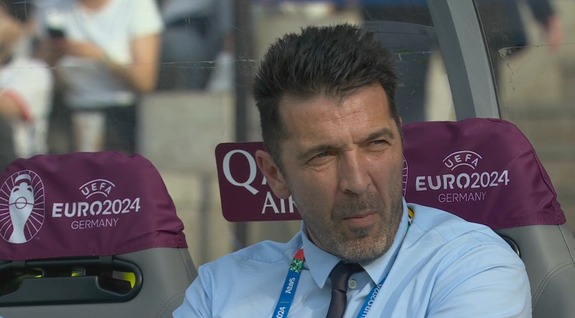 比赛第37分钟弗鲁勒破门,意大利0-1落后瑞士,且场面遭到瑞士完全压制,镜头给到意大利教练席上的领队布冯,布冯面色沉重。