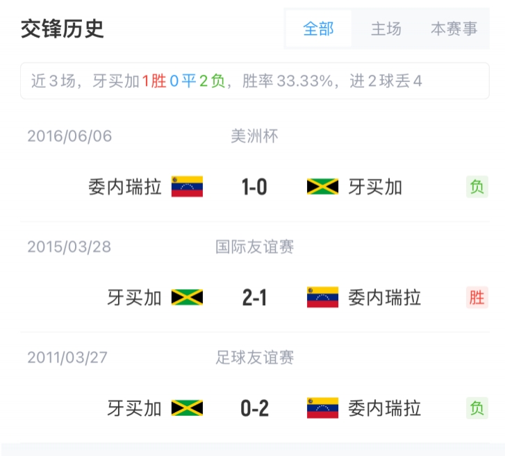 7月1日讯 美洲杯B组第三轮,牙买加vs委内瑞拉比赛即将打响。赛前首发出炉。