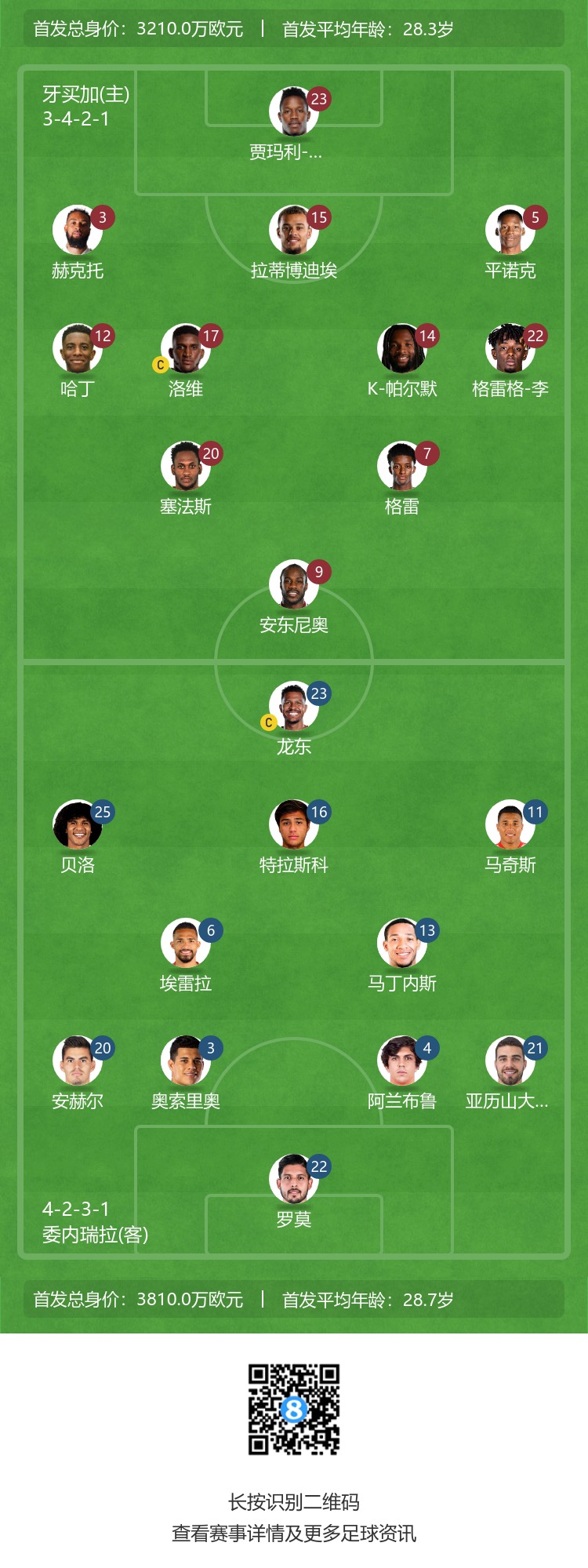 美洲杯-牙买加vs委内瑞拉首发:龙东、安东尼奥先发
