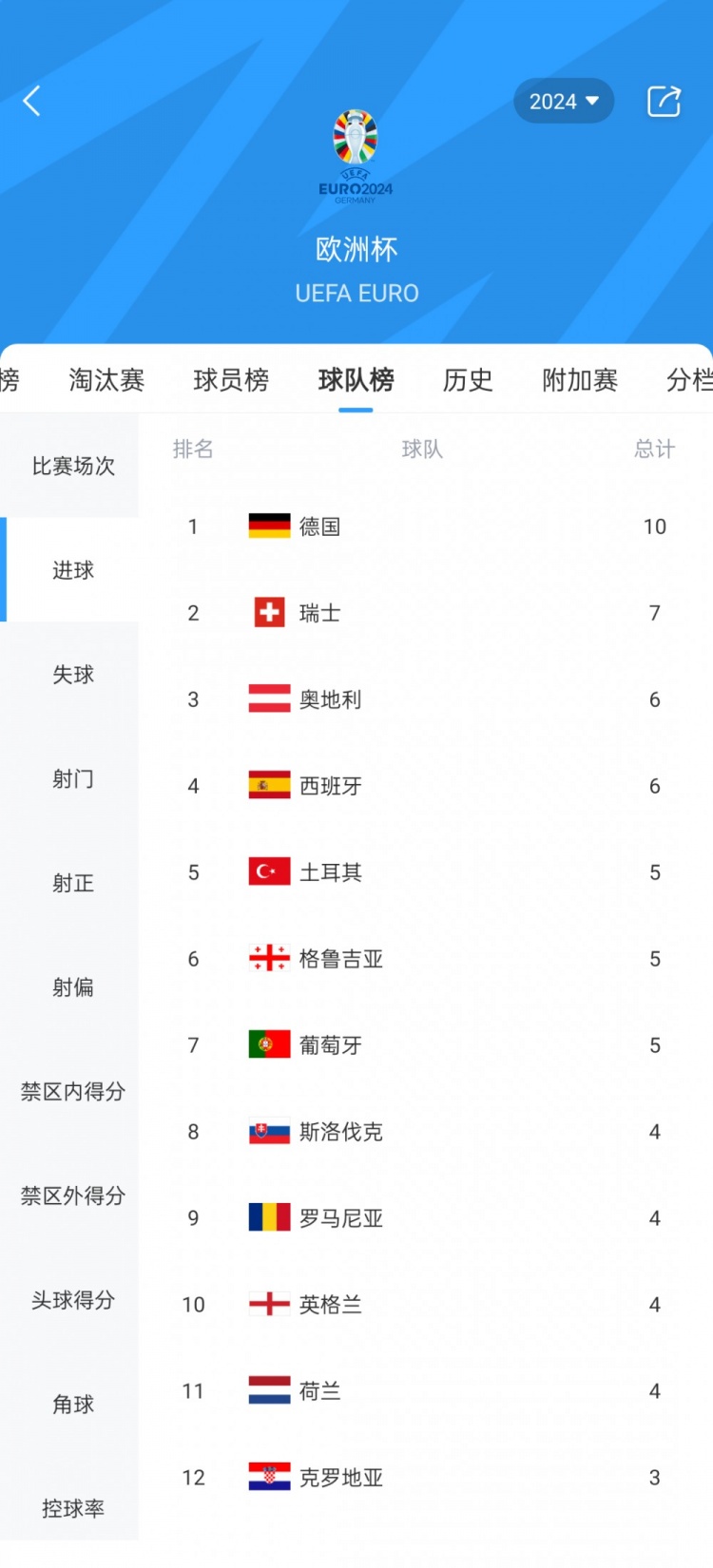7月1日讯 欧洲杯1/8决赛,西班牙上半场1-1战平格鲁吉亚,勒诺尔芒自摆乌龙。乌龙君本届欧洲杯已经打进8球,目前进球数仅次于东道主德国队,德国在4场比赛打进10球