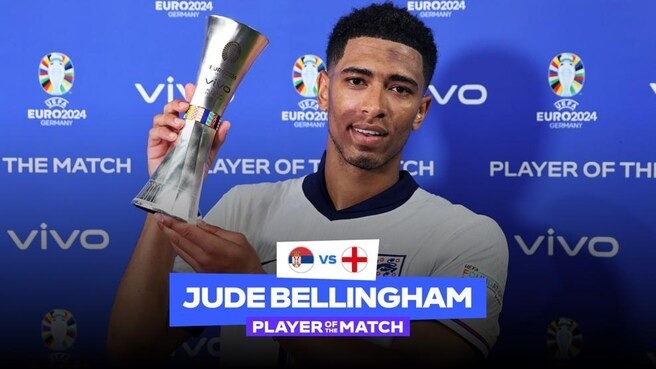7月1日讯 欧洲杯1/8决赛,英格兰加时2-1逆转斯洛伐克进8强,第95分钟倒钩绝平的贝林厄姆当选全场最佳球员,这是他本届第2次获评MVP。