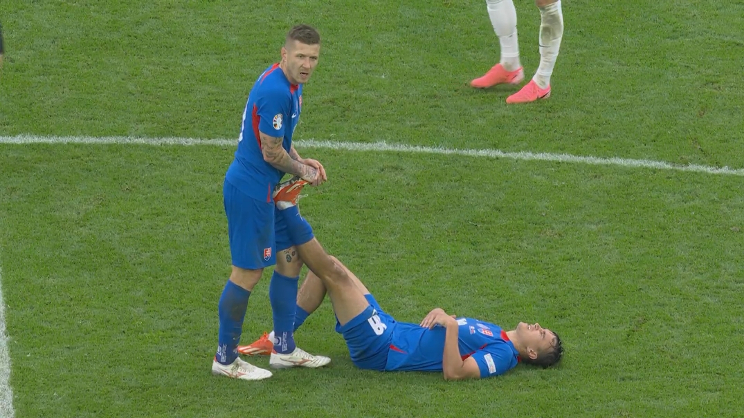 太拼!全场首次换人:第60分钟斯洛伐克球员抽筋被换下