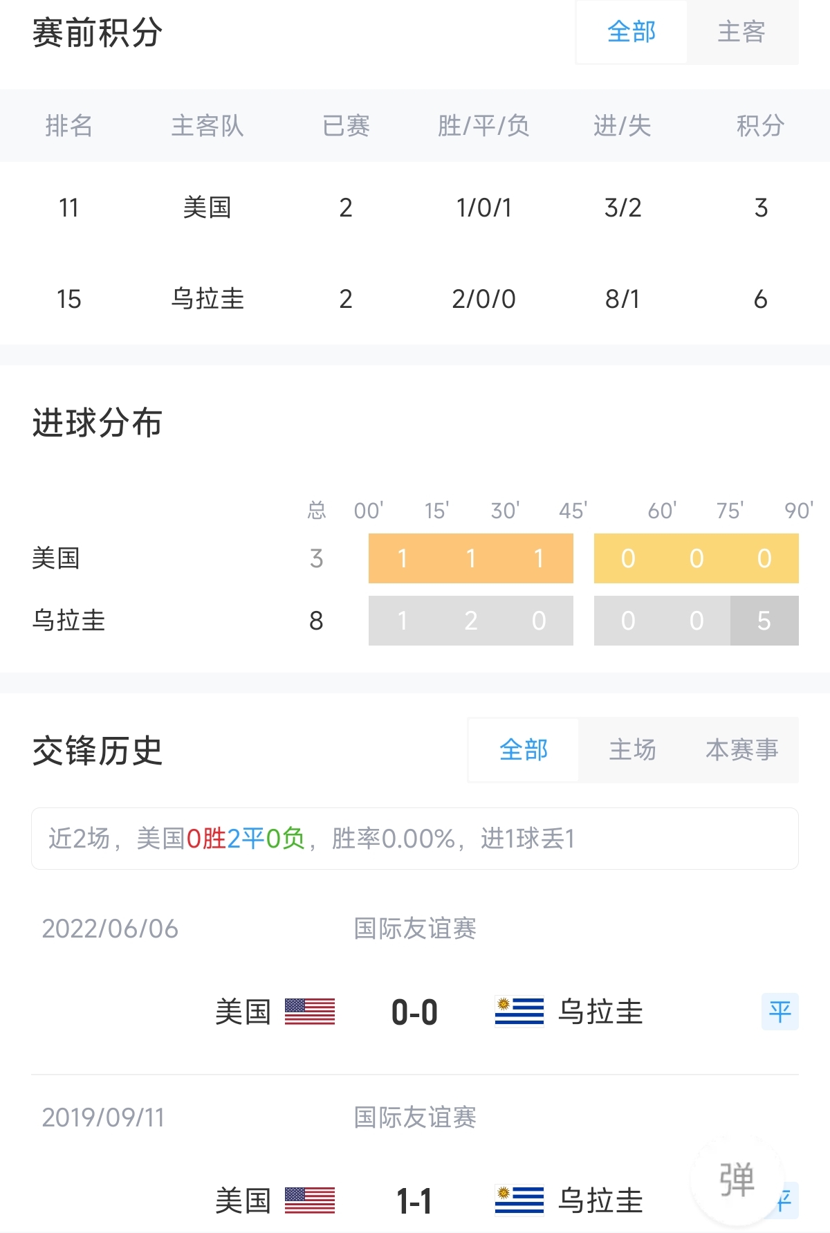 美洲杯C组,乌拉圭2胜积6分,位居榜首;美国1胜1负积3分,位居第二。