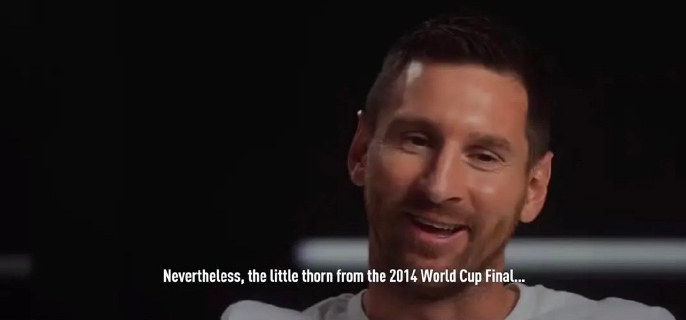 11月10日讯 阿迪达斯公布了齐达内对话梅西的节目。齐达内提问:“有没有一场比赛你想再踢一次?”梅西回答:“2014年世界杯决赛。”2014年世界杯决赛,阿根廷对阵