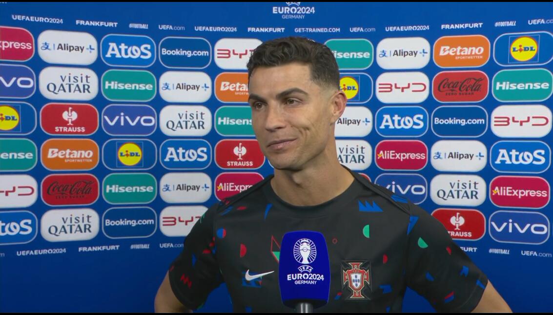 07月02日讯 欧洲杯1/8决赛,葡萄牙点球大战3-0斯洛文尼亚,C罗赛后接受采访,确认这将是他最后一届欧洲杯。