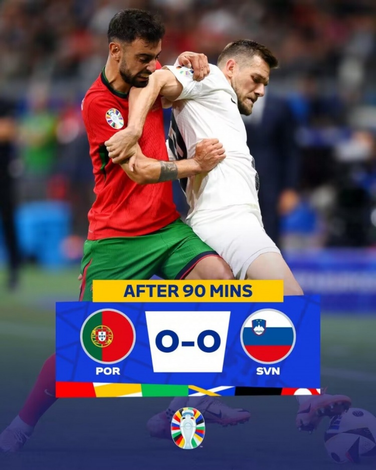 7月2日讯 欧洲杯1/8决赛,葡萄牙对阵斯洛文尼亚。上半场,C罗高质量任意球稍稍高出。易边再战,塞斯科错失良机,最后时刻C罗错失绝杀。最终葡萄牙0-0斯洛文尼亚进入加时赛。