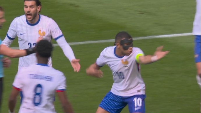 姆巴佩和琼阿梅尼、特奥等人向裁判激烈抗议,结果琼阿梅尼被出示了一张黄牌。按照本届欧洲杯的规则,只有队长才可以向裁判交涉。