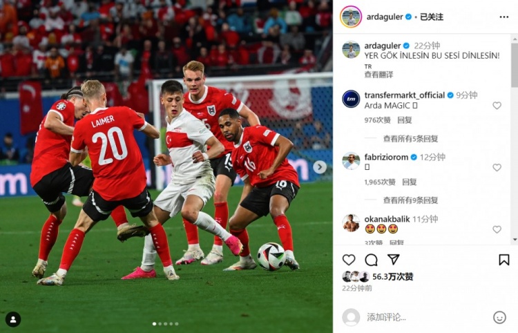 赛后居勒尔更新社媒庆祝晋级:让世界听见土耳其的声音!