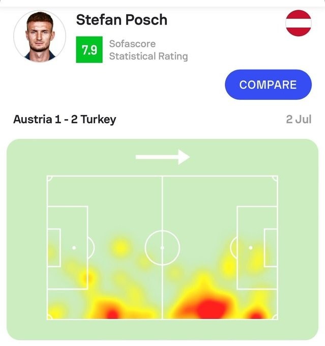 7月3日讯 奥地利在本轮欧洲杯1-2不敌土耳其,他们在下半场制造了多次进球良机但未能把握住。数据统计显示,博洛尼亚右后卫波施在本场3次创造重大得分机会,预期