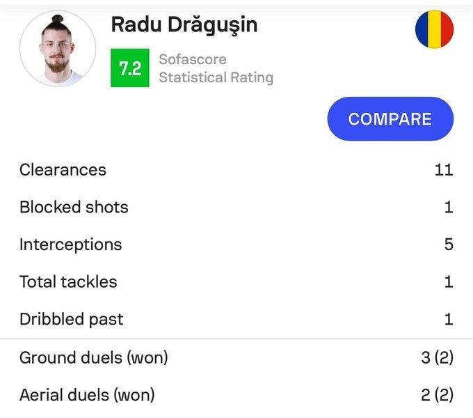 7月3日讯 荷兰在本轮欧洲杯3-0完胜罗马尼亚,热刺中卫德拉古辛表现出色,贡献11解围5拦截1封堵1抢断。数据统计显示,德拉古辛全场共计完成18次成功防守行为,比场
