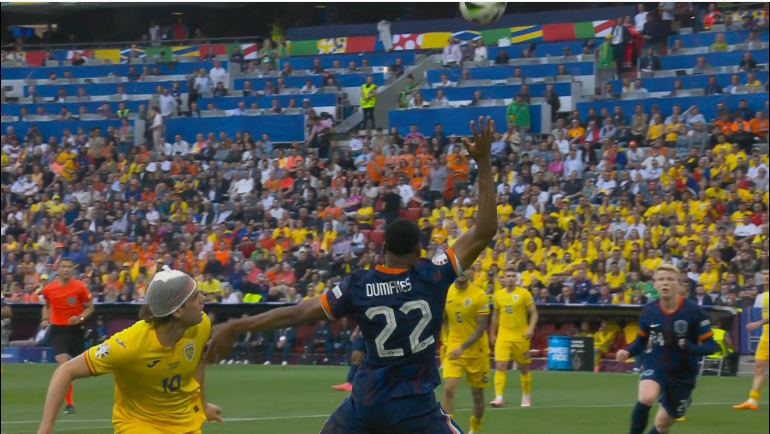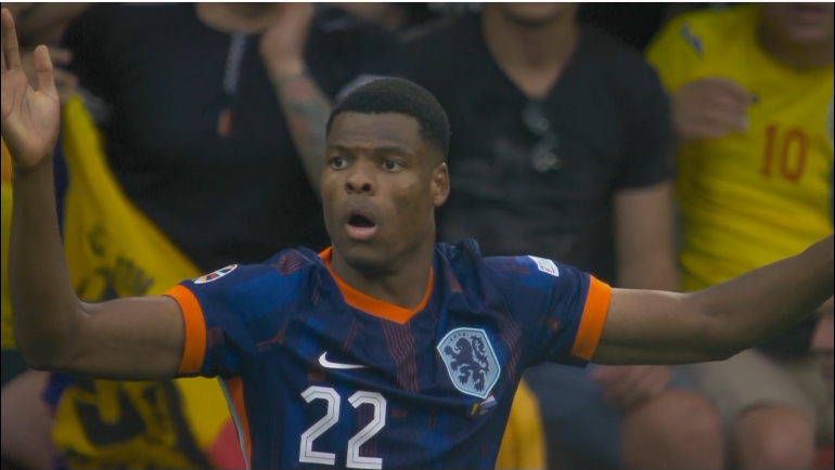 7月3日讯 欧洲杯1/8决赛,罗马尼亚vs荷兰。比赛第56分钟,加克波传中给向后点,邓弗里斯在被对手拉拽之后倒地,裁判示意没有点球,邓弗里斯显得很不解。