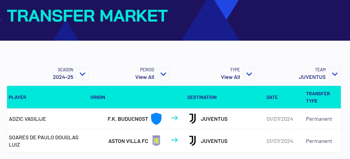 阿季奇此前效力于黑山俱乐部布杜克诺斯特,上赛季为球队出战41场比赛,打进8球并送出4记助攻,意甲官网显示尤文已经签下这位小将,交易方式为永久转会,预计他将为尤文新生代效力。
