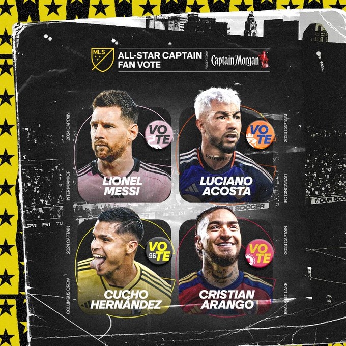 美职联官方列出了全明星队的队长候选,四名候选人为梅西(迈阿密)、阿科斯塔(辛辛那提FC)、埃尔南德斯(哥伦布机员)、阿兰戈(皇家盐湖城),通过球迷投票选出最终的队长人选。