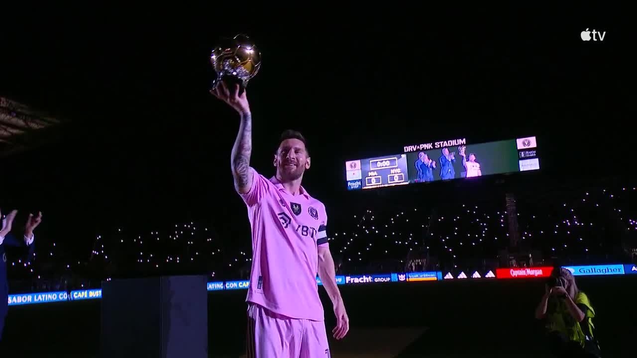11月11日讯 今天,迈阿密国际为梅西举办了金球奖特别庆典活动,梅西在向现场球迷展示了自己的第八座金球奖后,发表了演说。
