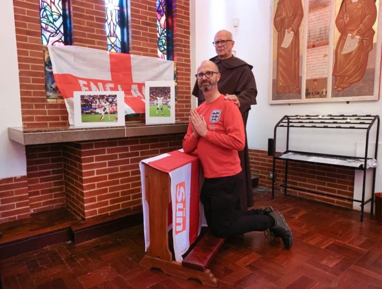 7月6日讯 据《太阳报》报道,记者奥利弗-哈维特在英格兰对阵瑞士的比赛之前来到圣裘德国家教堂(National Shrine of St Jude)为英格兰队祈福。