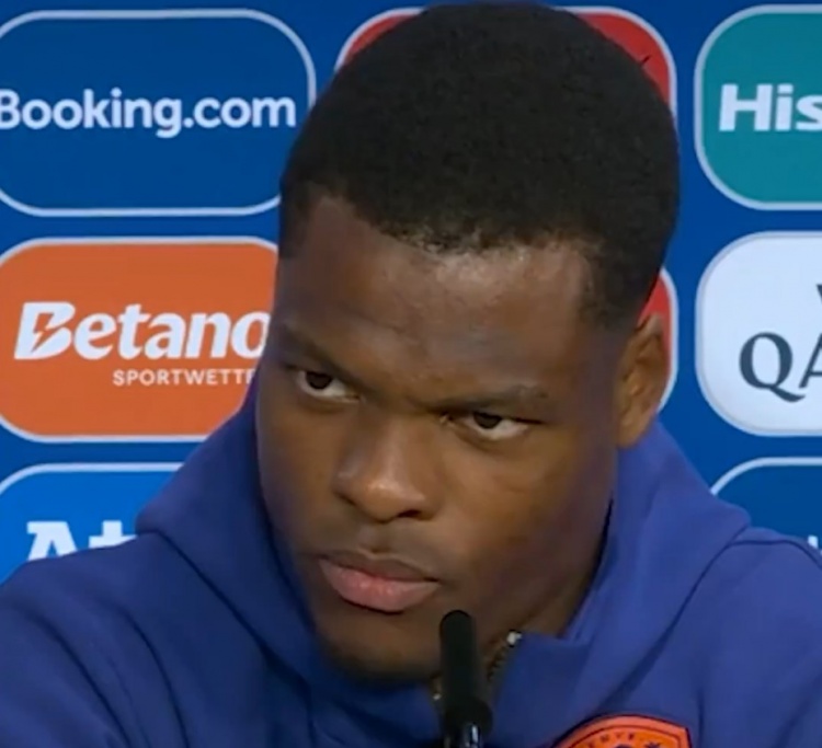 7月6日讯 北京时间7月7日3:00,荷兰队将在欧洲杯1/4决赛迎战土耳其,赛前,荷兰后卫邓弗里斯出席新闻发布会。