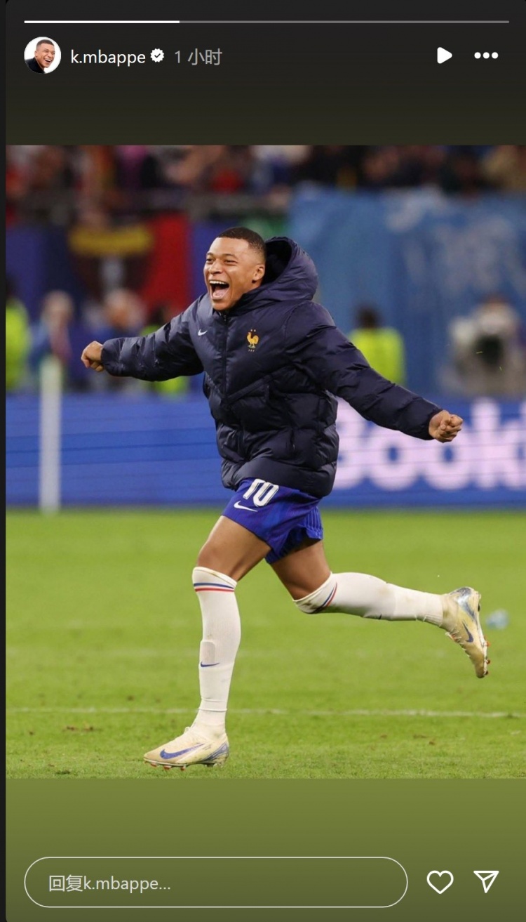 晋级欧洲杯四强!姆巴佩社媒晒奔跑庆祝照片