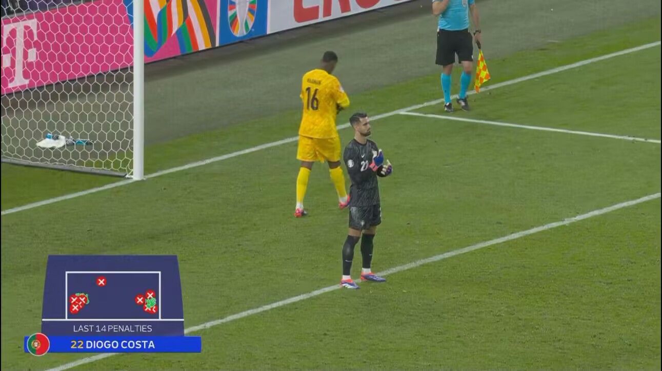 魔力不再!迪奥戈-科斯塔1/8决赛三扑点,1/4决赛五罚无一扑出