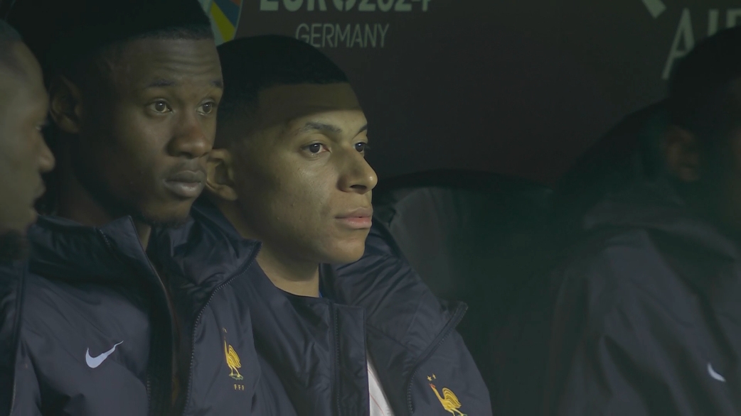 07月06日讯 欧洲杯1/4决赛,葡萄牙vs法国。加时赛上半场结束,比分仍0-0,法国队长姆巴佩主动被换下,现场镜头给到替补席上的他。