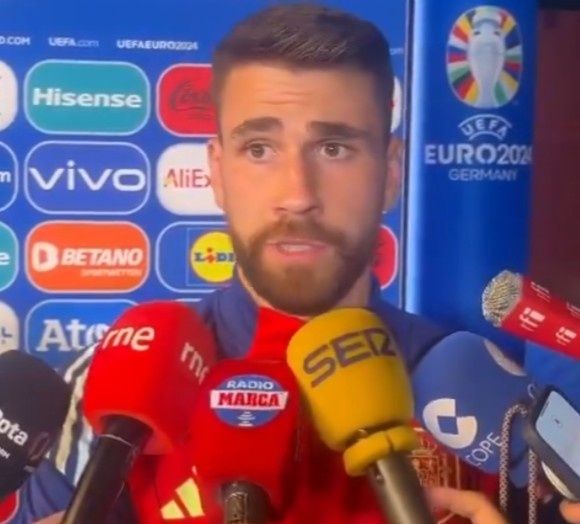7月6日讯 西班牙2-1淘汰东道主德国队,晋级欧洲杯4强!赛后西班牙门将乌奈-西蒙接受采访。