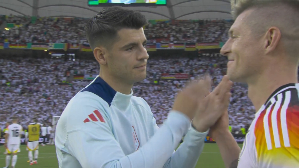 场下是兄弟!送别克罗斯最后一战,莫拉塔鼓掌拥抱,克罗斯微笑