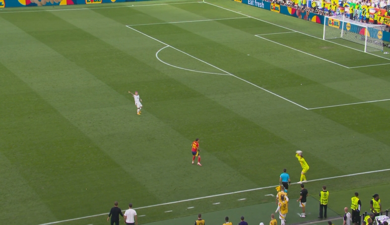 07月06日讯 欧洲杯1/4决赛,西班牙vs德国,比赛第89分钟,维尔茨破门扳平比分!而此次进攻的发起点是诺伊尔掷出的界外球。