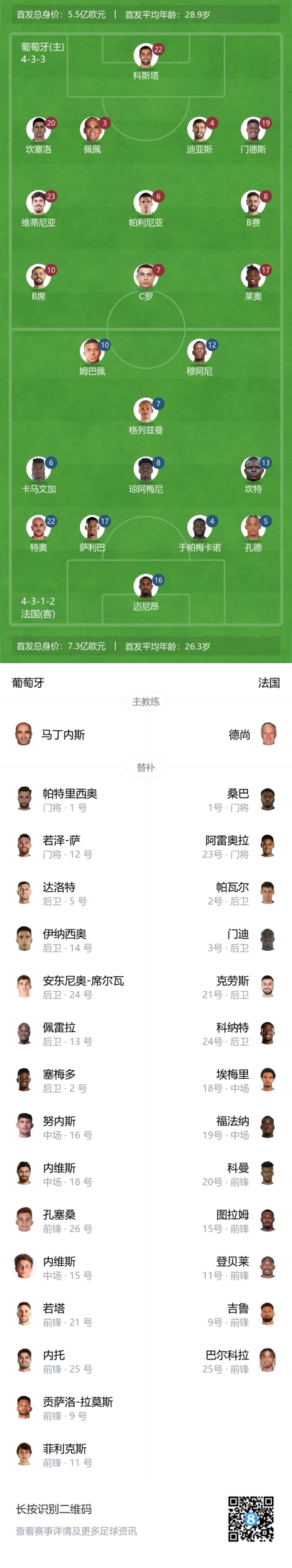 欧洲杯-葡萄牙vs法国:C罗pk姆巴佩,佩佩 坎特出战,图拉姆替补