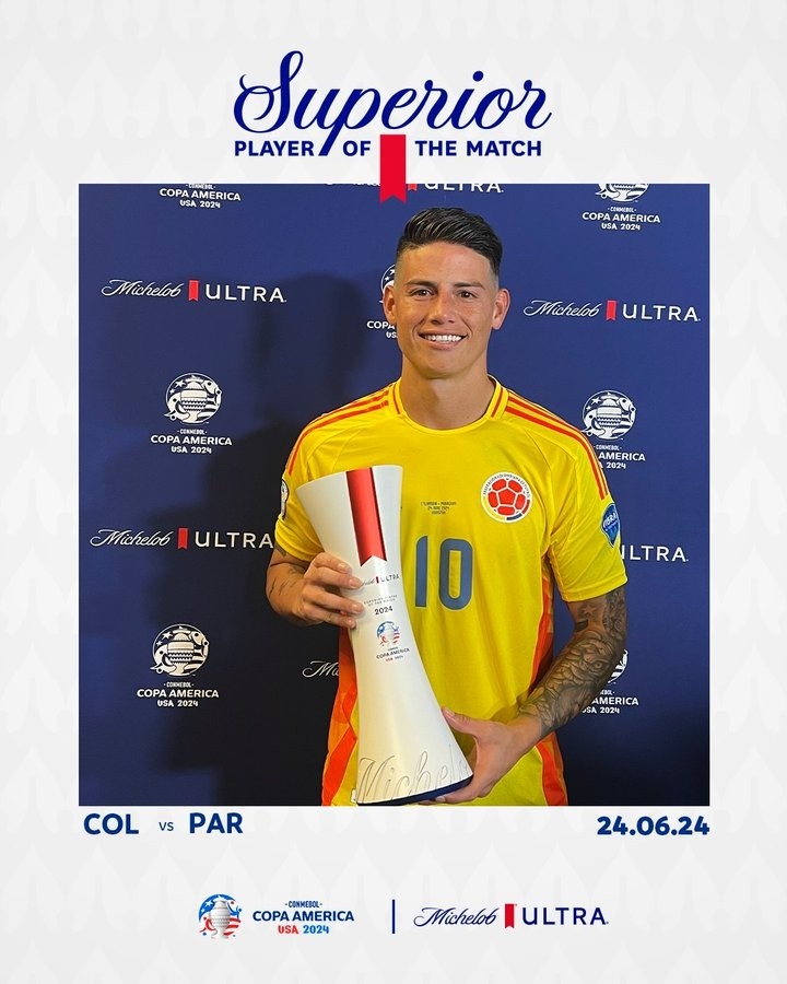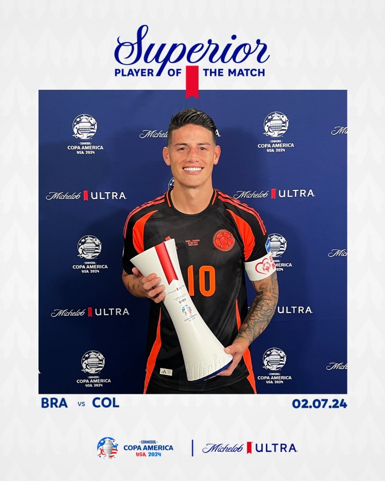 赛后J罗也是当选了本场比赛的最佳球员,在哥伦比亚打完的4场美洲杯比赛中,J罗第3次当选最佳,唯一一次没当选的是迪亚斯最佳。