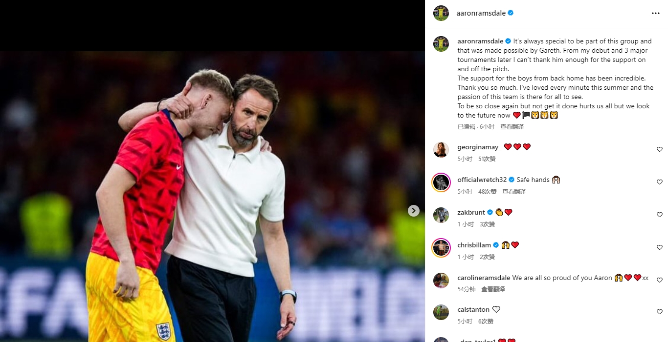 7月17日讯 此前,索斯盖特宣布辞去英格兰男足主帅的职位。拉姆斯代尔更新社媒,致敬了索斯盖特,谈到了欧洲杯失利。拉姆斯代尔:“能成为这个团队的一员总是很特