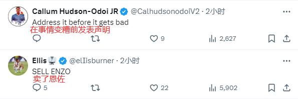 引众怒!切尔西球迷俱乐部社媒下刷屏:卖了恩佐,让他道歉