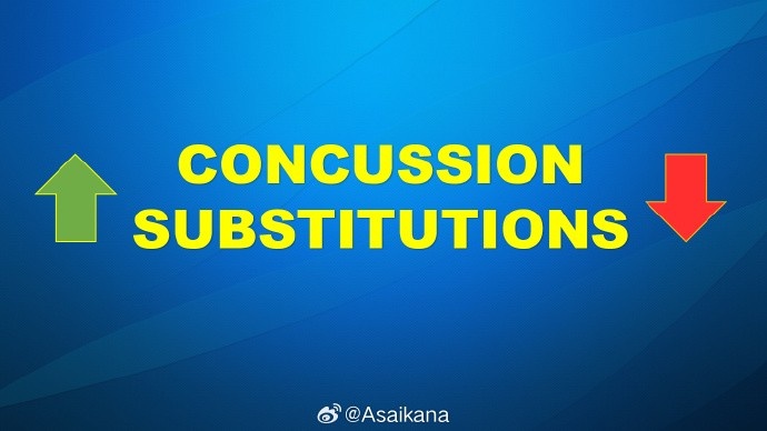 截至目前本赛季国内赛事已知的脑震荡换人为6次