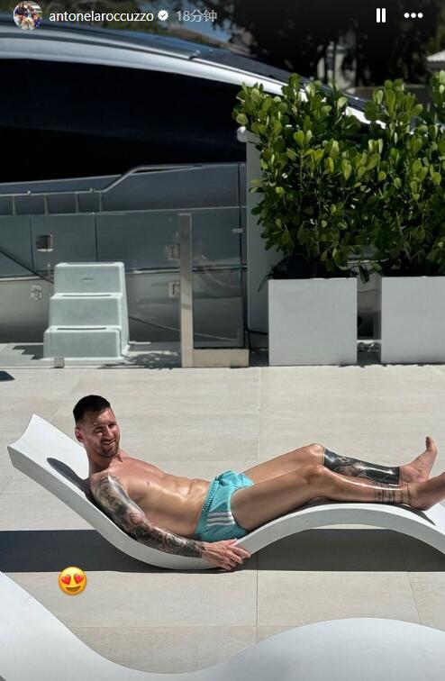 ⛱夺冠后开始享受假期!梅西穿着短裤惬意晒太阳,左脚仍未消肿
