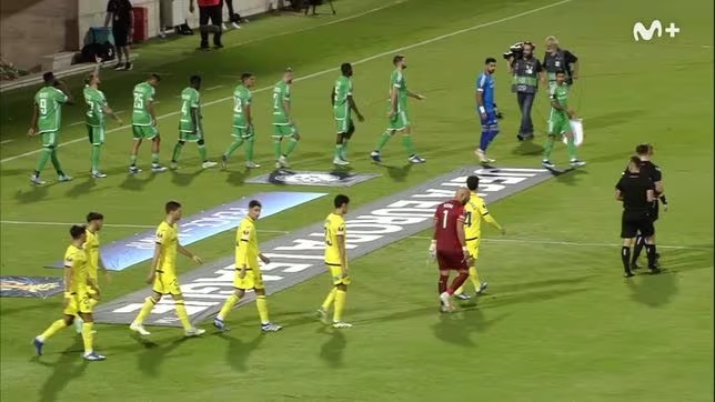 两队在比赛开始前前往中圈,比利亚雷亚尔只有九名球员到位。队伍没有出现曼迪和阿克霍马奇,两名球员在默哀时决定选择离开。