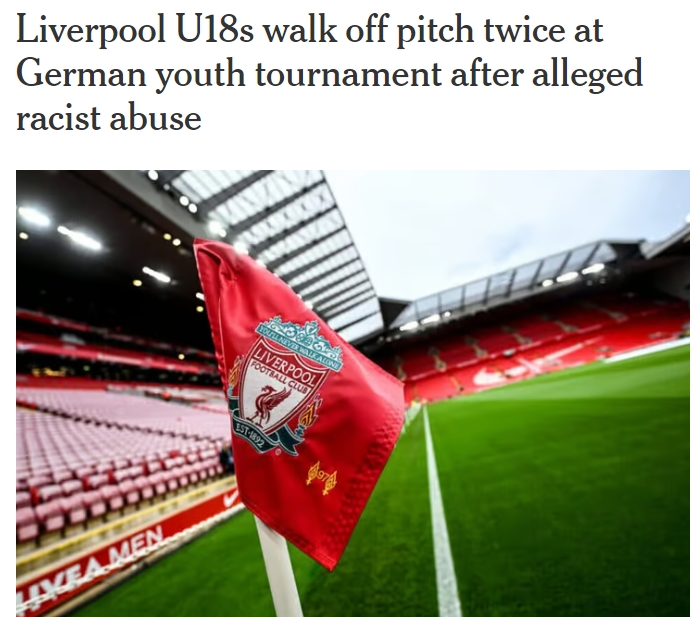 7月21日讯 The Athletic的报道, 在德国举办的一场青年锦标赛上,利物浦U18队连续2次提前退场,因为他们队内的一位球员称遭到种族歧视。